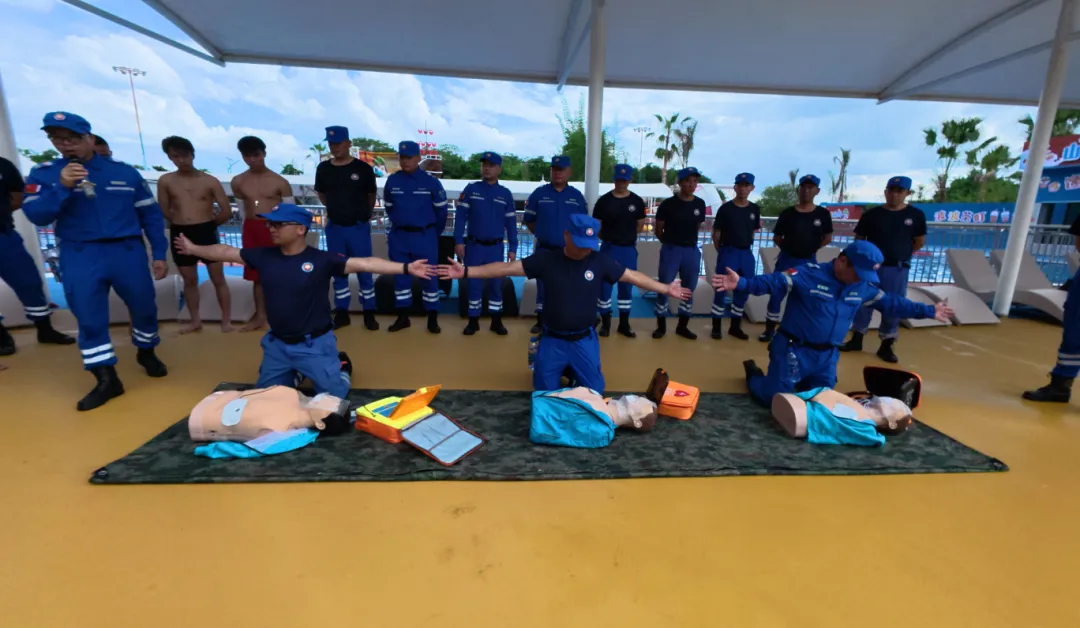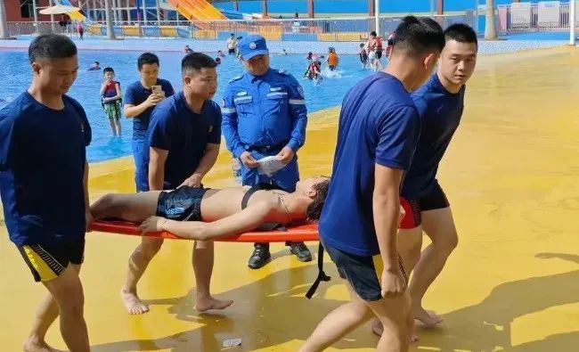 在水上溺水救援演练环节,模拟了游客意外落水的紧急场景。演练队伍迅速启动应急预案,救生员携带专业救援装备迅速入水展开施救,岸上队员密切配合,高效完成了对溺水者的快速定位、安全拖带以及上岸转移等关键救援环节,充分展现了水域救援团队在应对突发落水事件时的快速反应能力和规范操作水平。